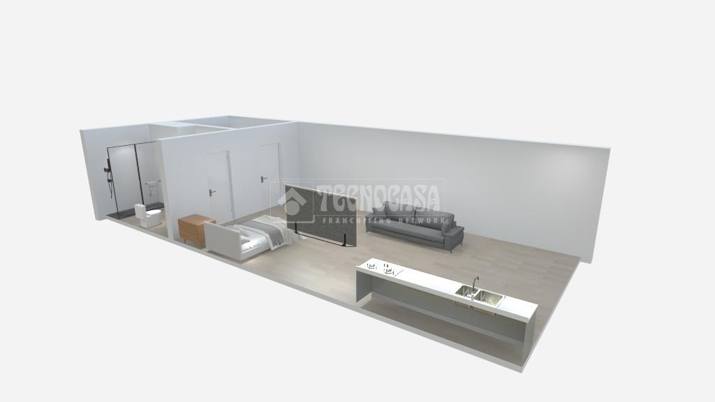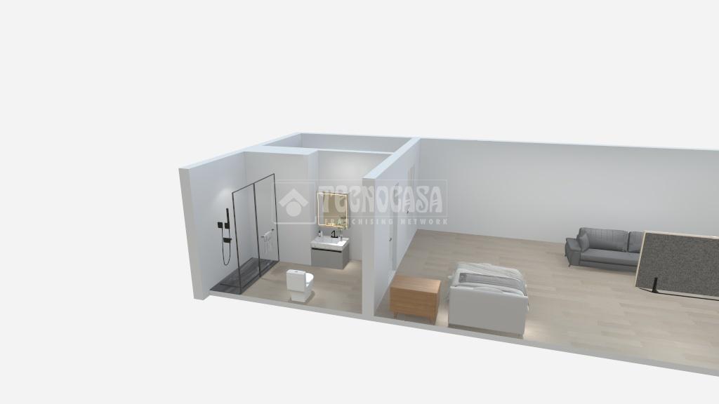 Consta de una entrada con espacio adaptado a cocina americana con salón y dos estancias independientes de cuarto de baño y lavadero.